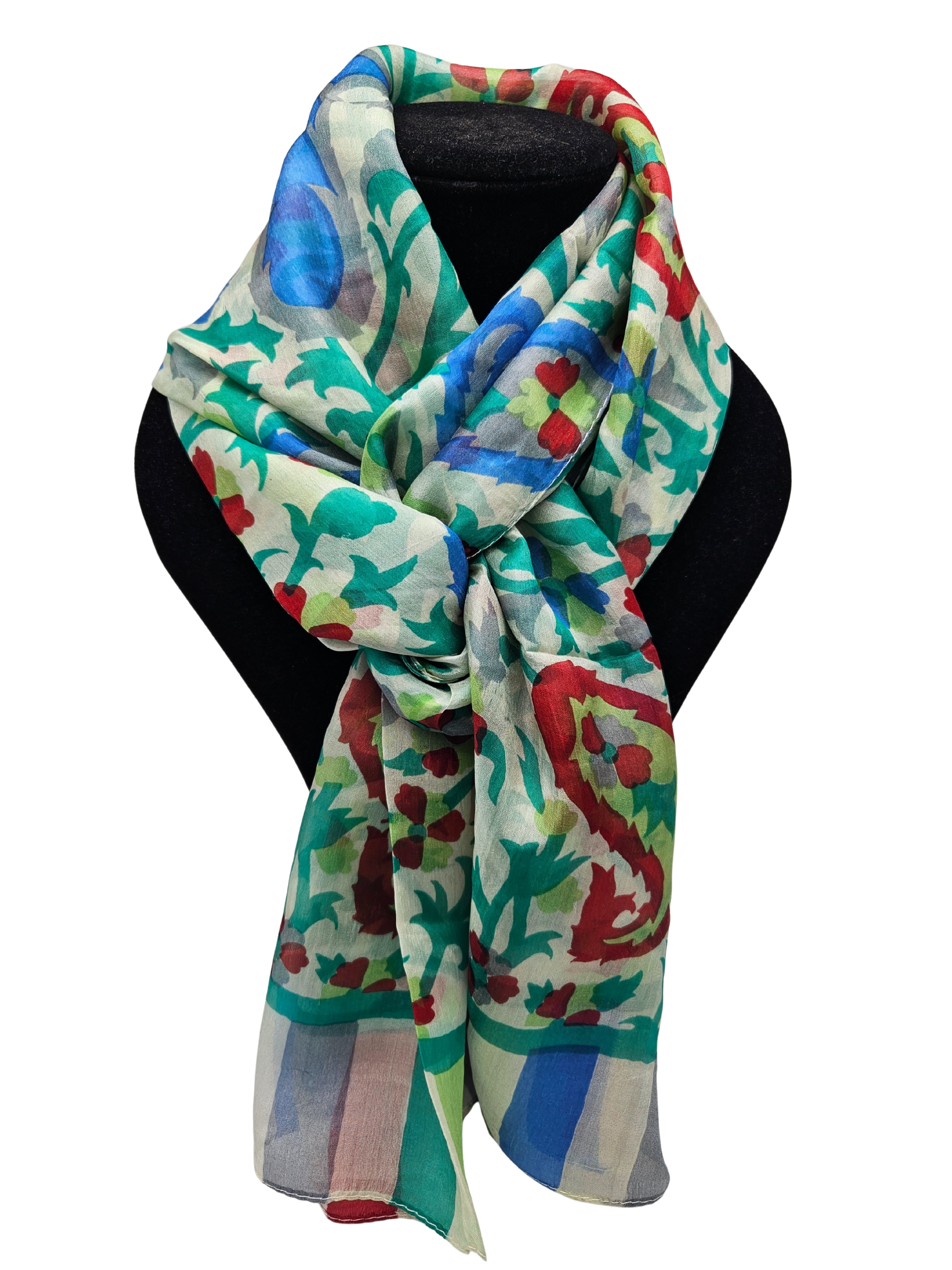 Esta preciosa mascada está hecha 100% de una suave y delicada seda.
