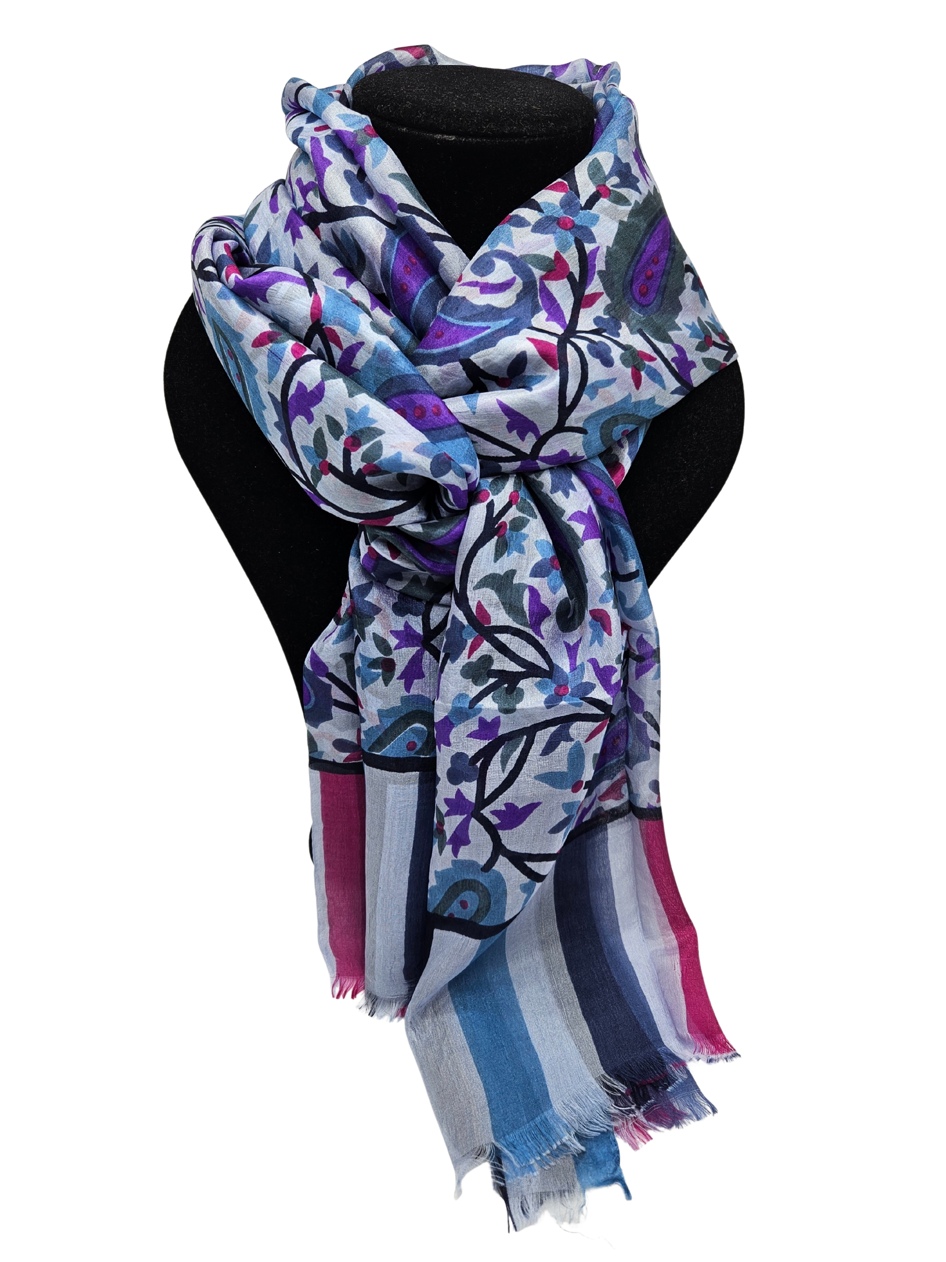 Esta preciosa mascada está hecha 100% de una suave y delicada seda.