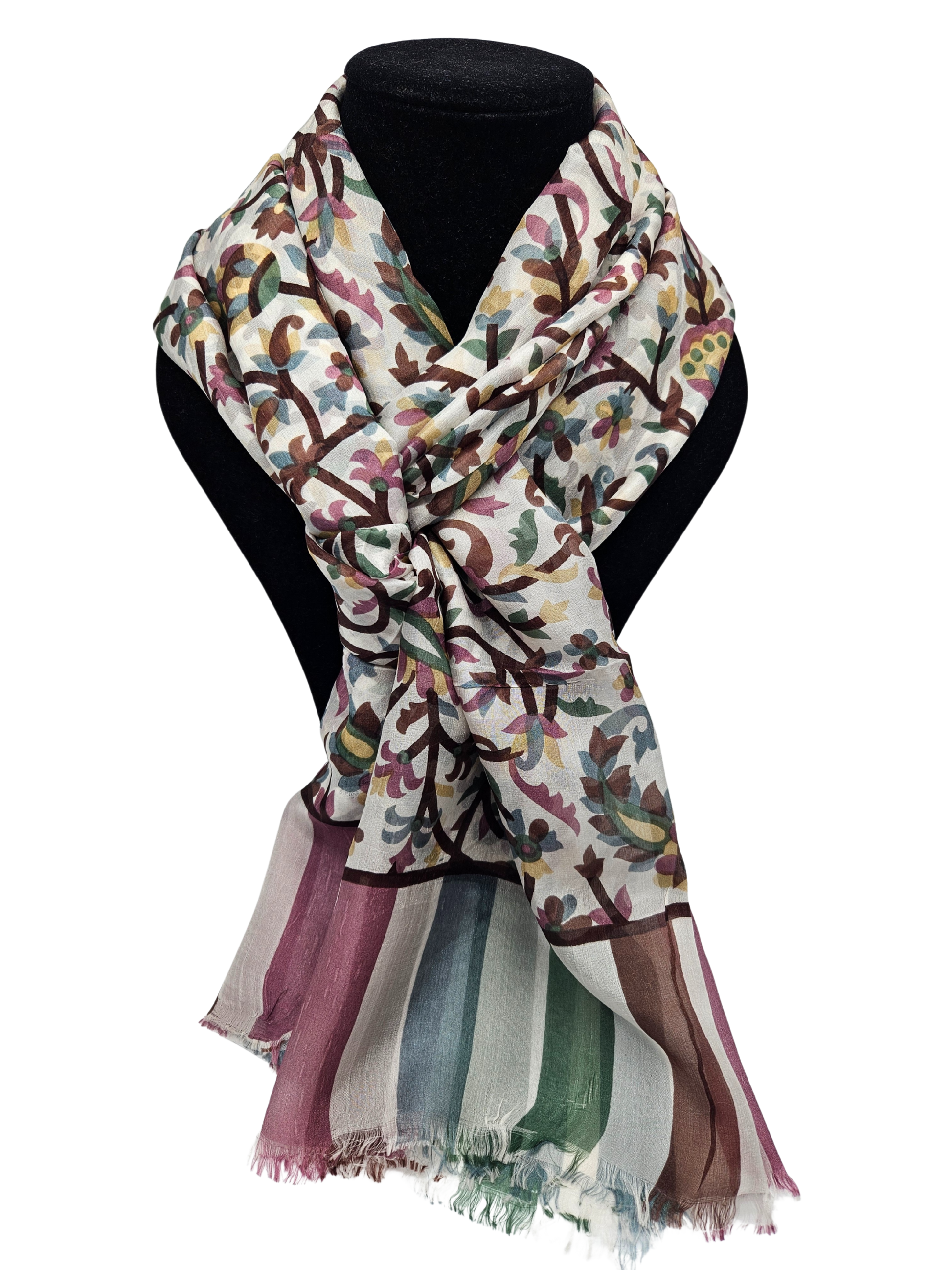 Esta preciosa mascada está hecha 100% de una suave y delicada seda.