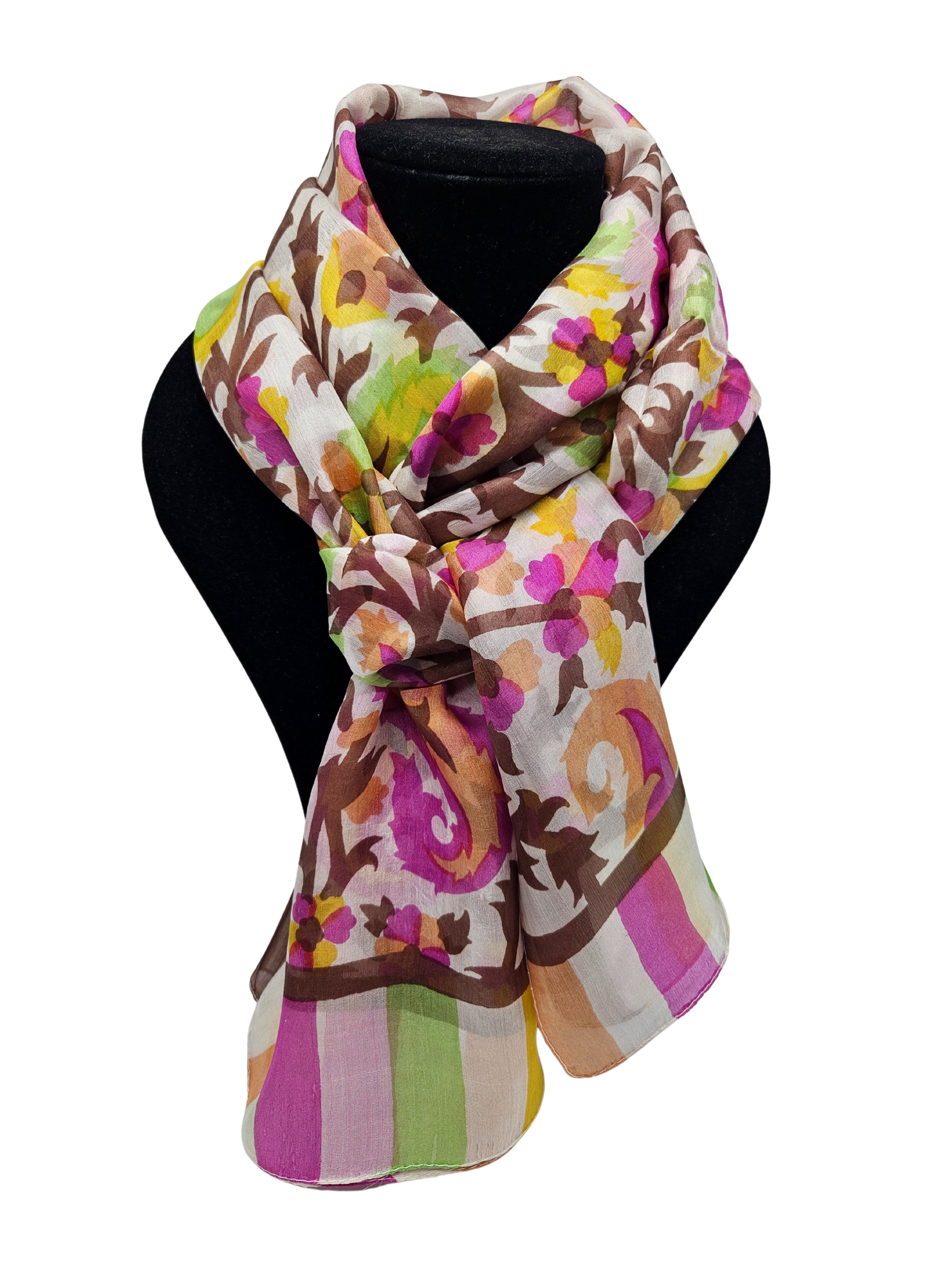 Esta preciosa mascada está hecha 100% de una suave y delicada seda.