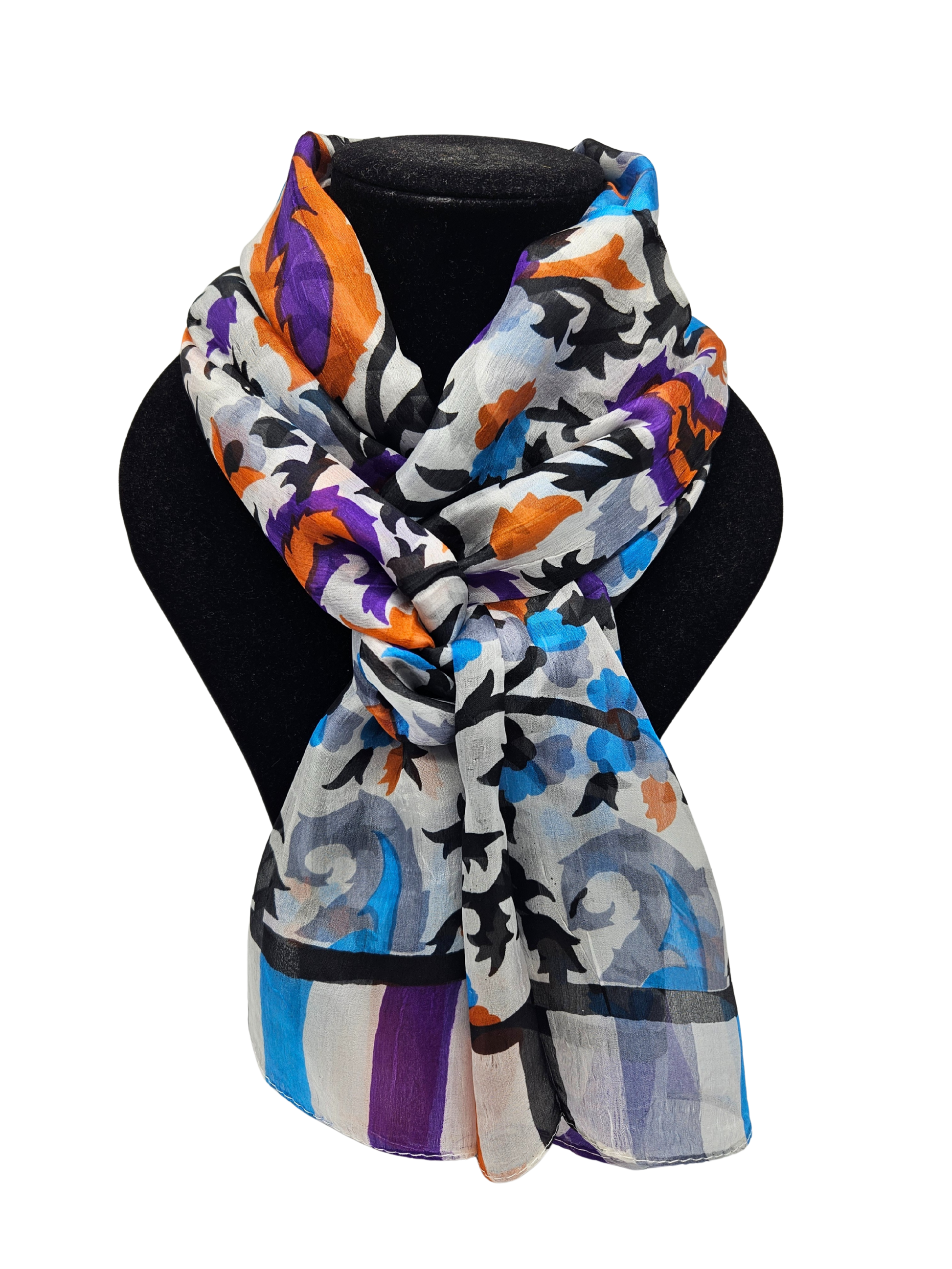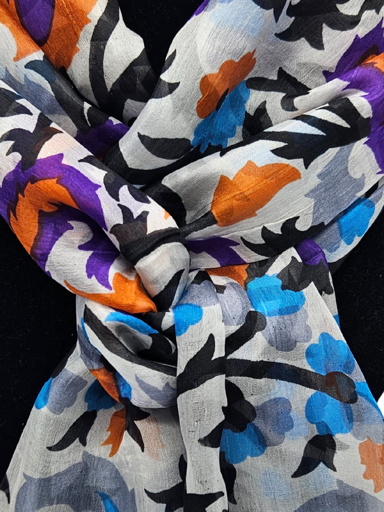 Esta preciosa mascada está hecha 100% de una suave y delicada seda.