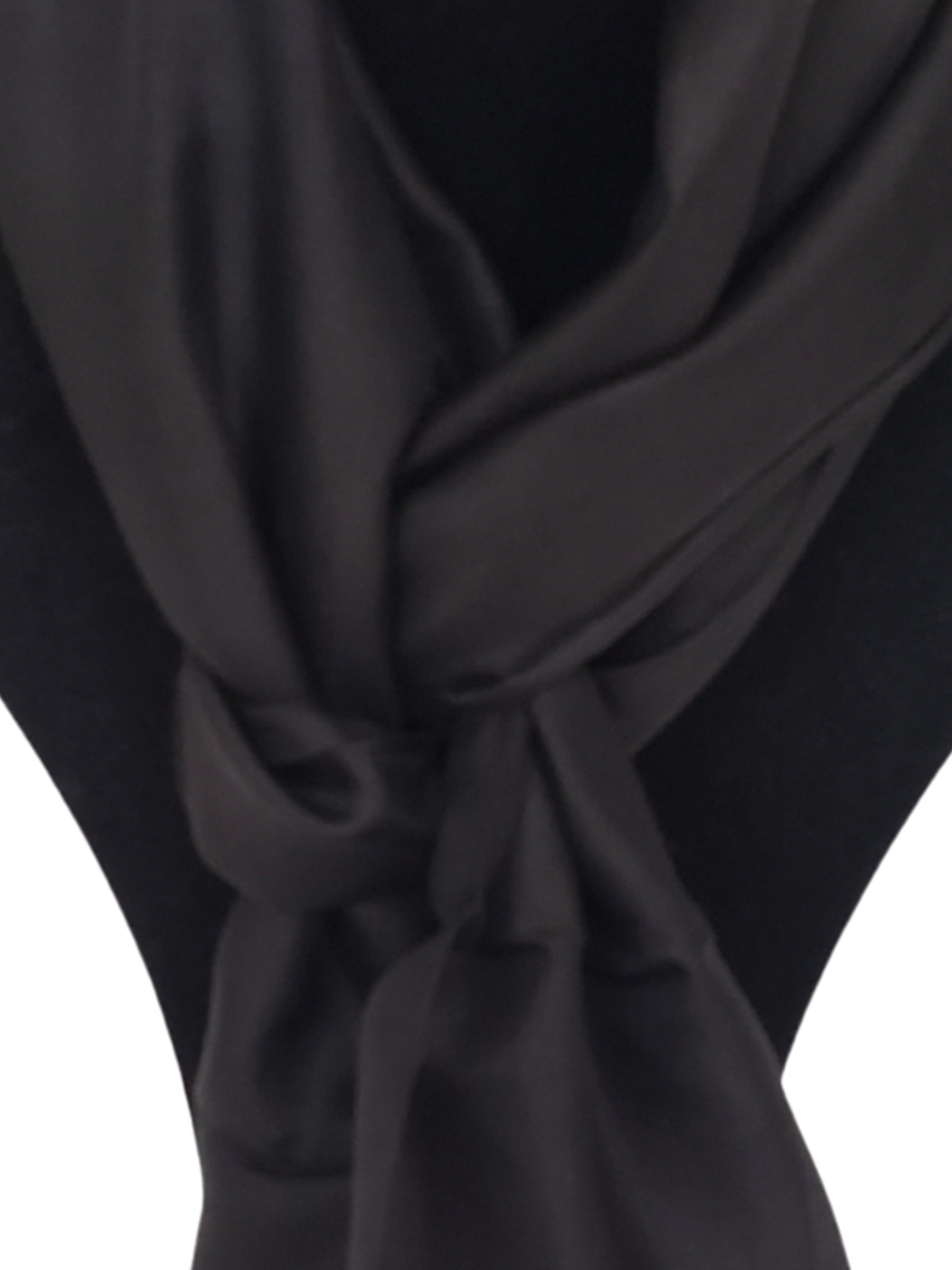 La seda es un material muy elegante y además térmico. Es ligero y tiene un brillo inigualable. Esta mascada es muy práctica porque puede doblarse a un tamaño pequeño y cabe en cualquier bolso. Cuando se la necesita, está ahí a la mano para abrigar y acentuar el atuendo. Los brillantes colores de esta prenda la hacen muy lucidora