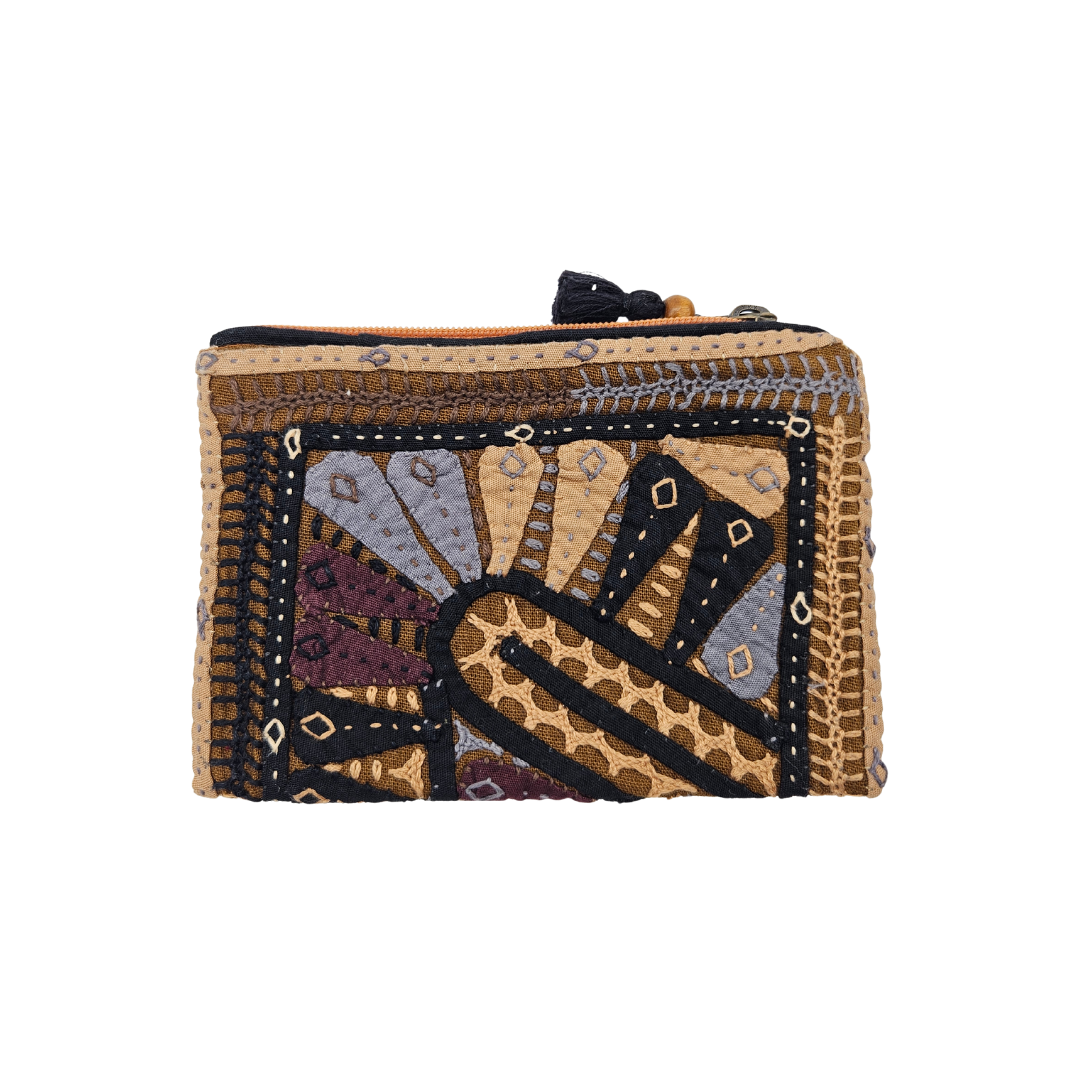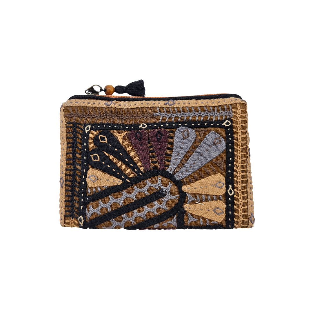 Este precioso monedero bordado hindú, con aplicaciones de tela está hecho a mano por las artesanas del distrito de Kutch en el estado de Gujarat, India.