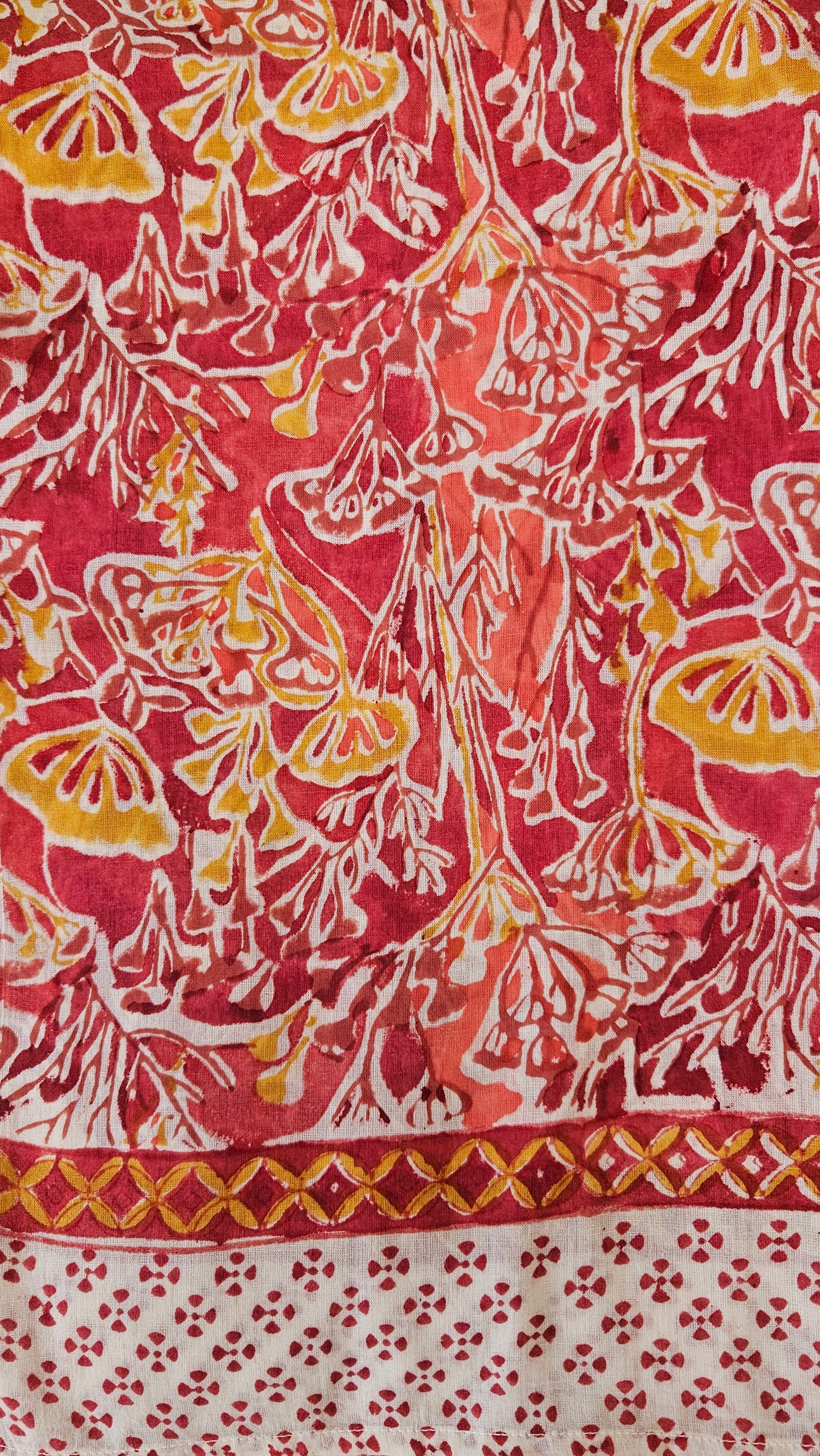 Está estampado a mano usando la antigua técnica de sellos de madera. El trabajo es completamente a mano y sigue una tradición de más de 4000 mil años. Un arte en extinción cuyos resultados son únicos y espectaculares.