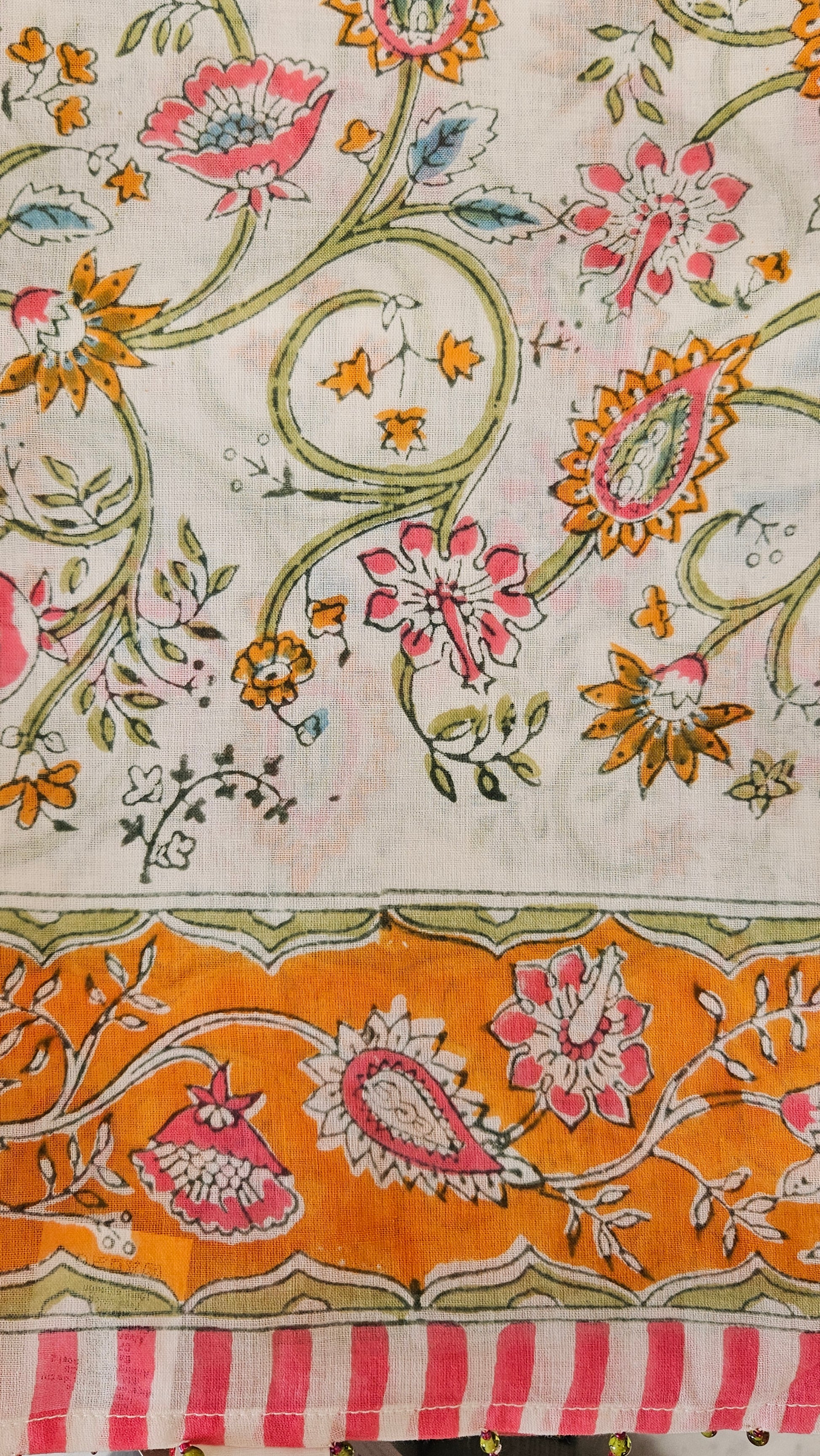 Está estampado a mano usando la antigua técnica de sellos de madera. El trabajo es completamente a mano y sigue una tradición de más de 4000 mil años. Un arte en extinción cuyos resultados son únicos y espectaculares.