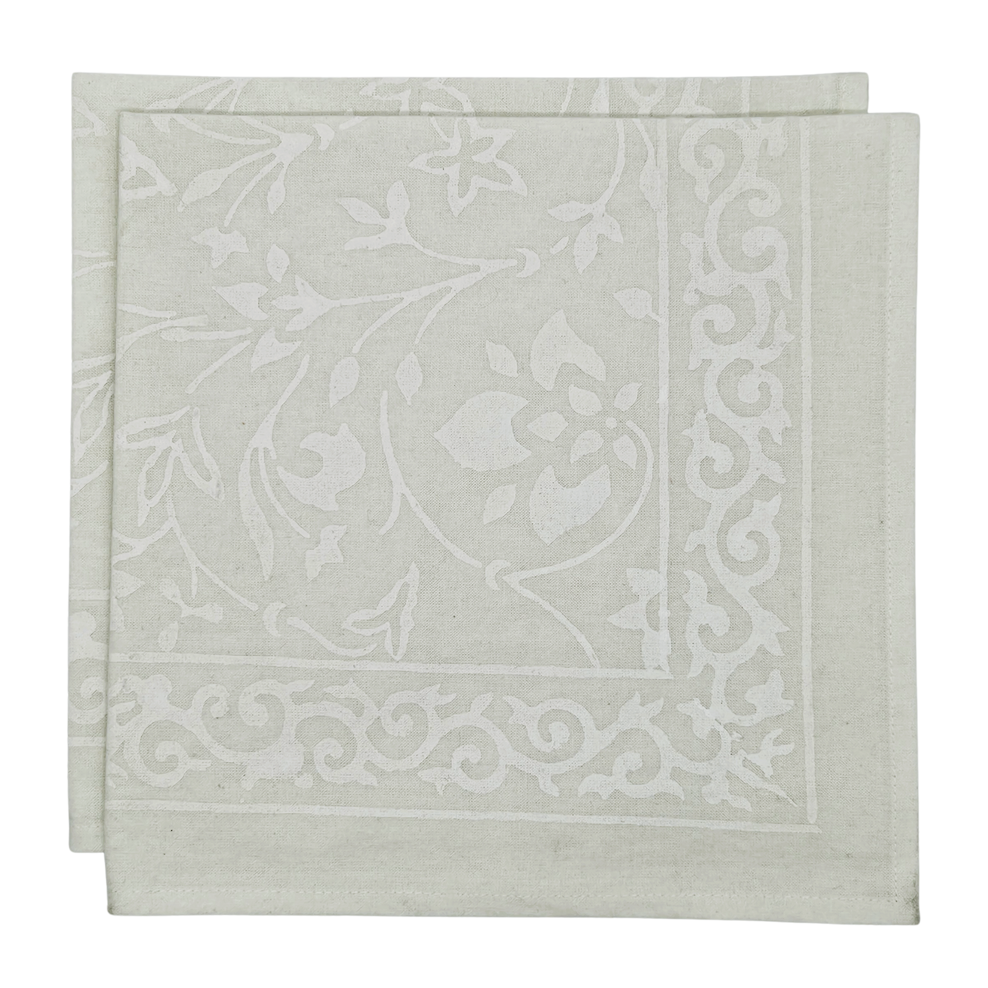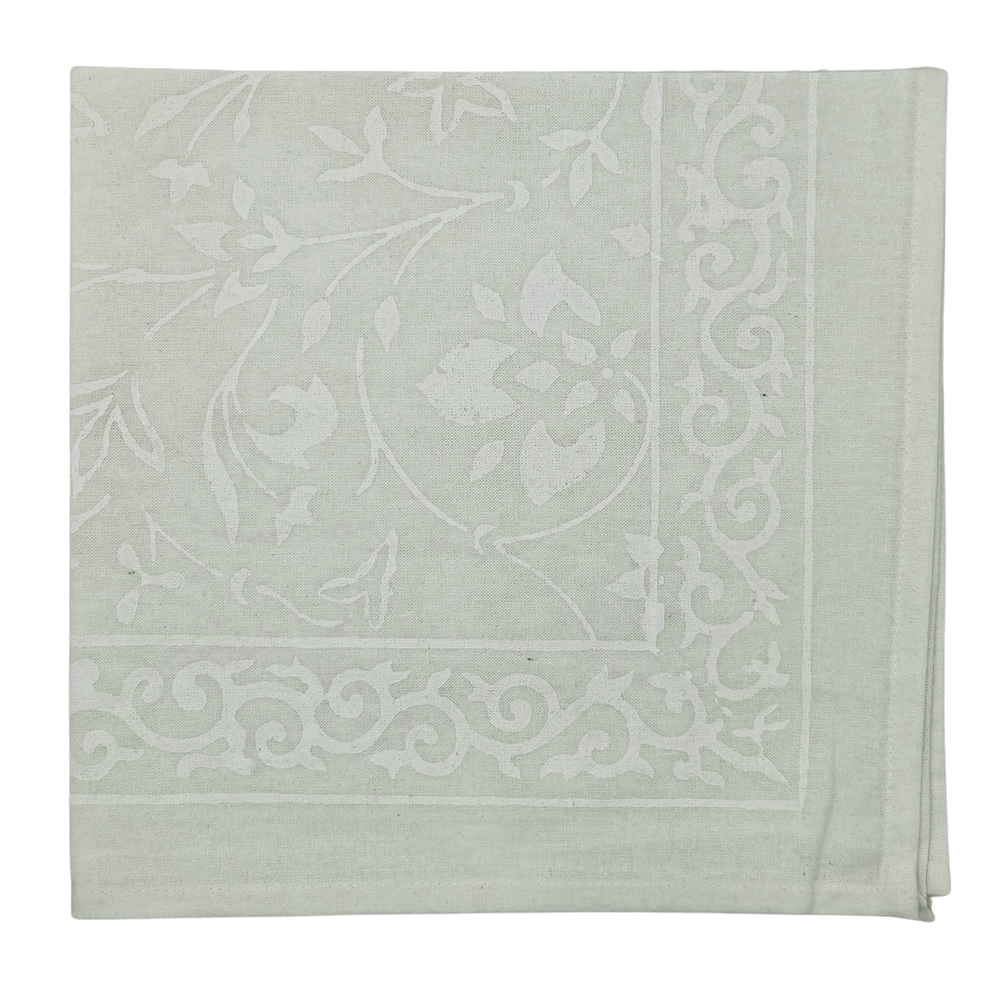 Servilleta lisa de algodón estampada a mano. Blanco sobre blanco